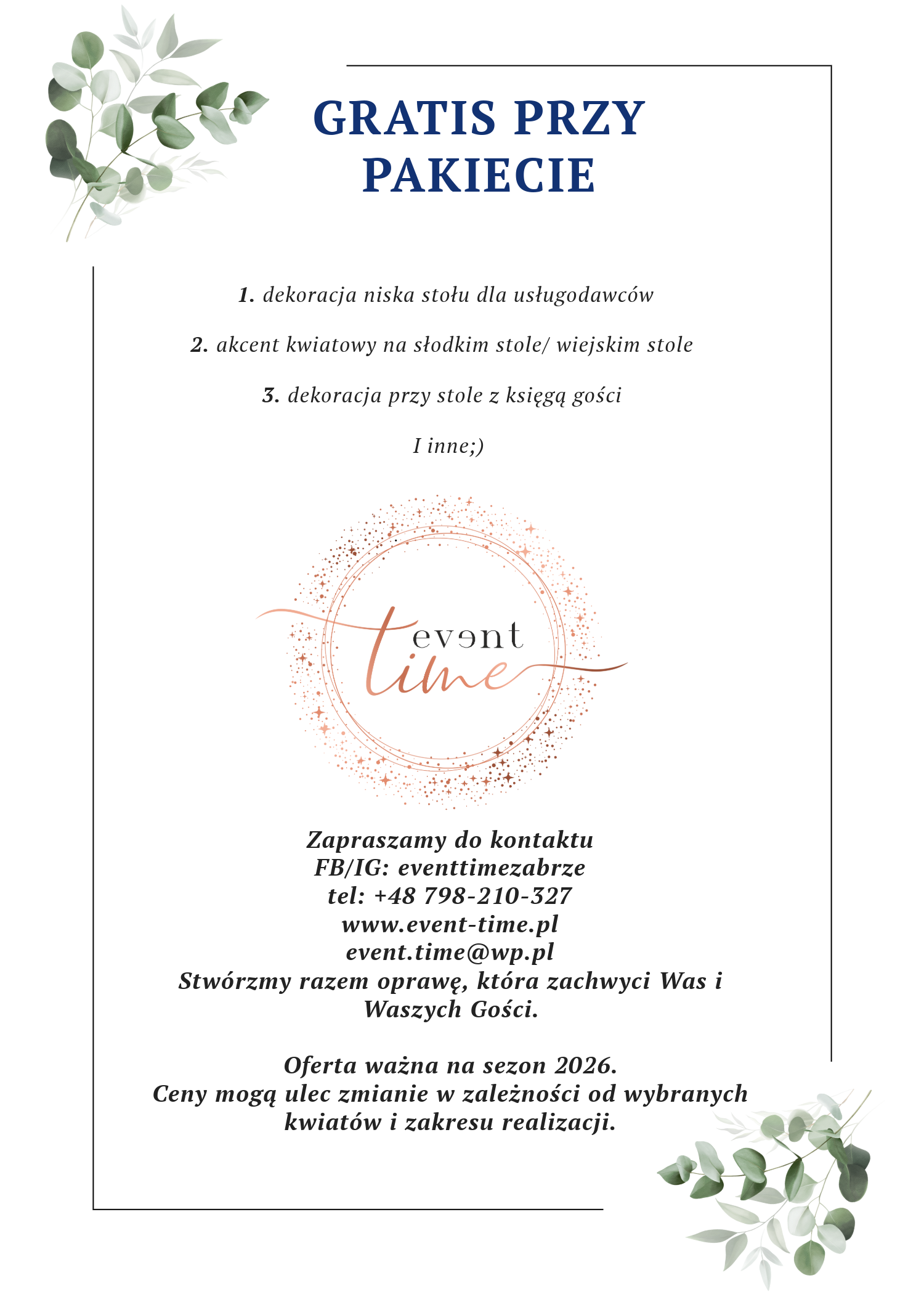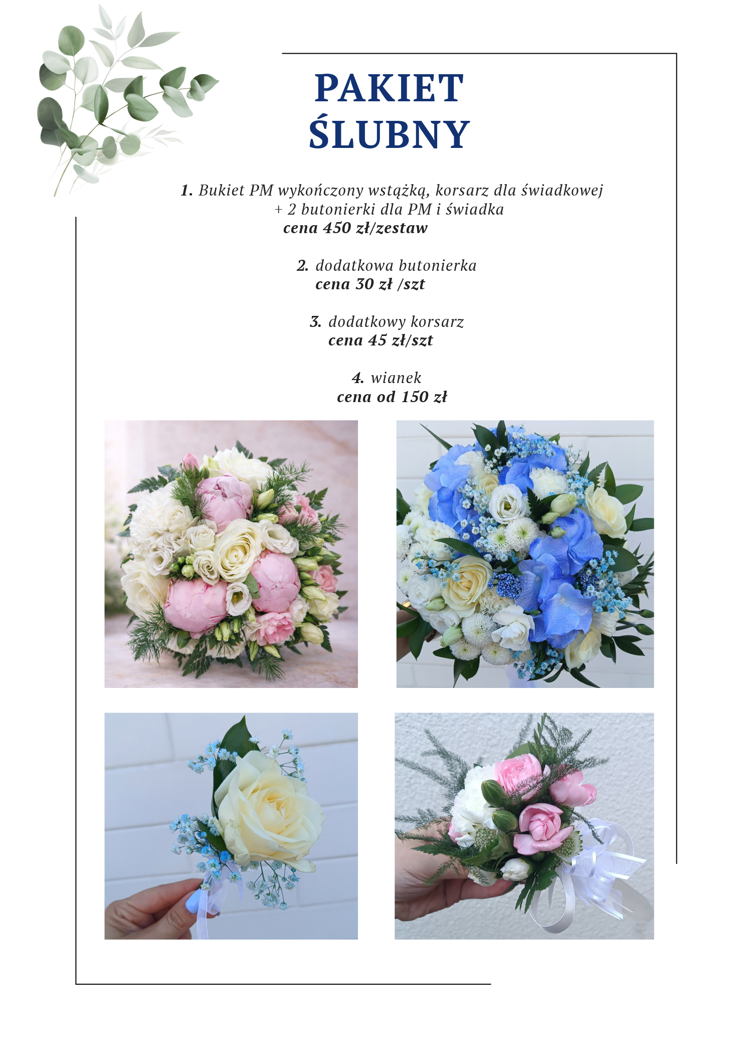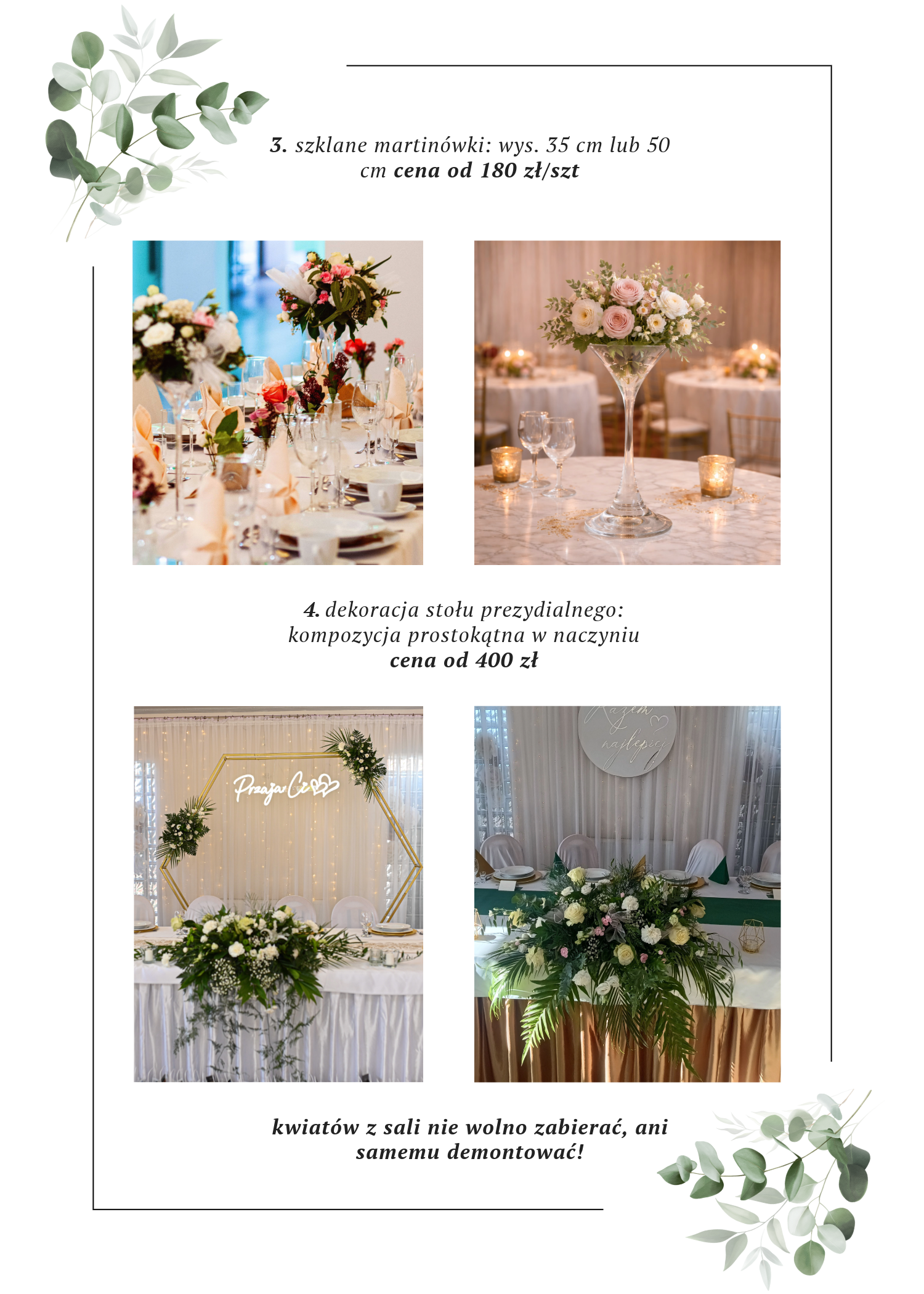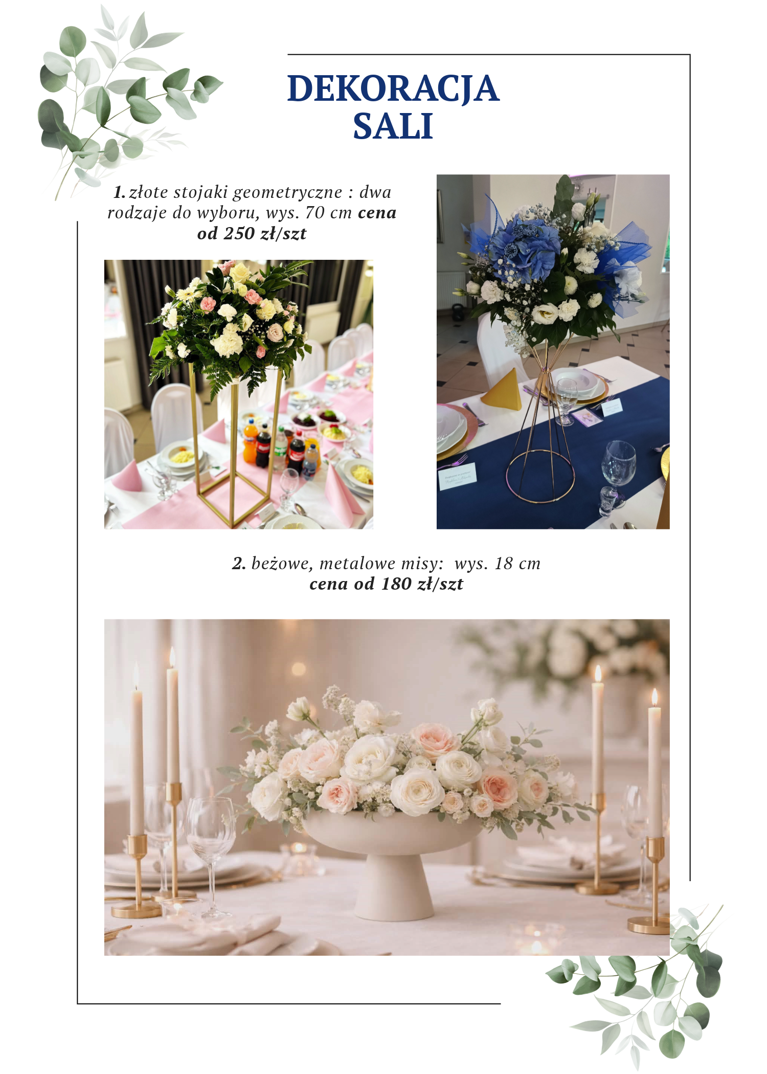 Usługi florystyczne, wynajem dekoracji ślubnych oraz organizacja imprez okolicznościowych.