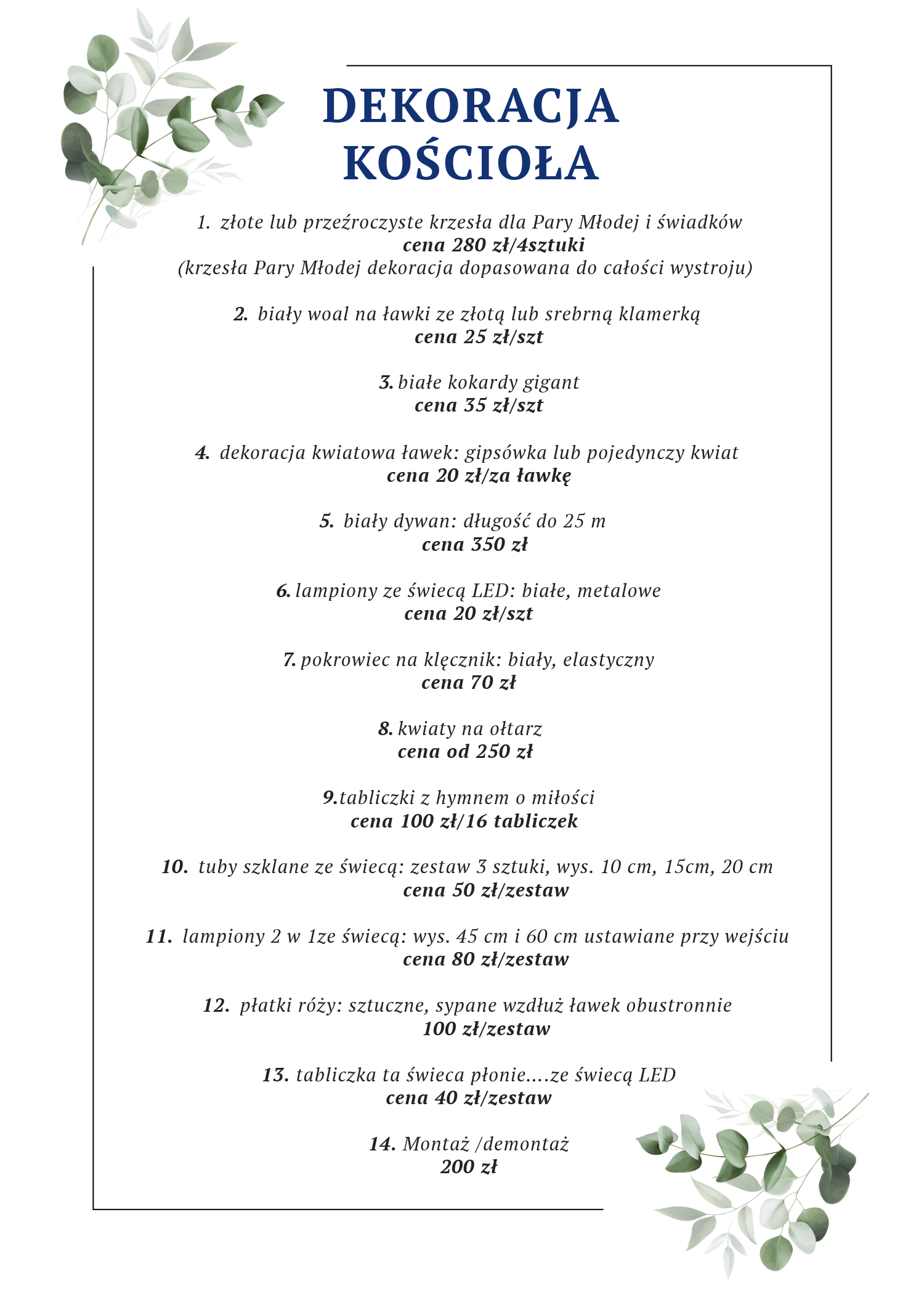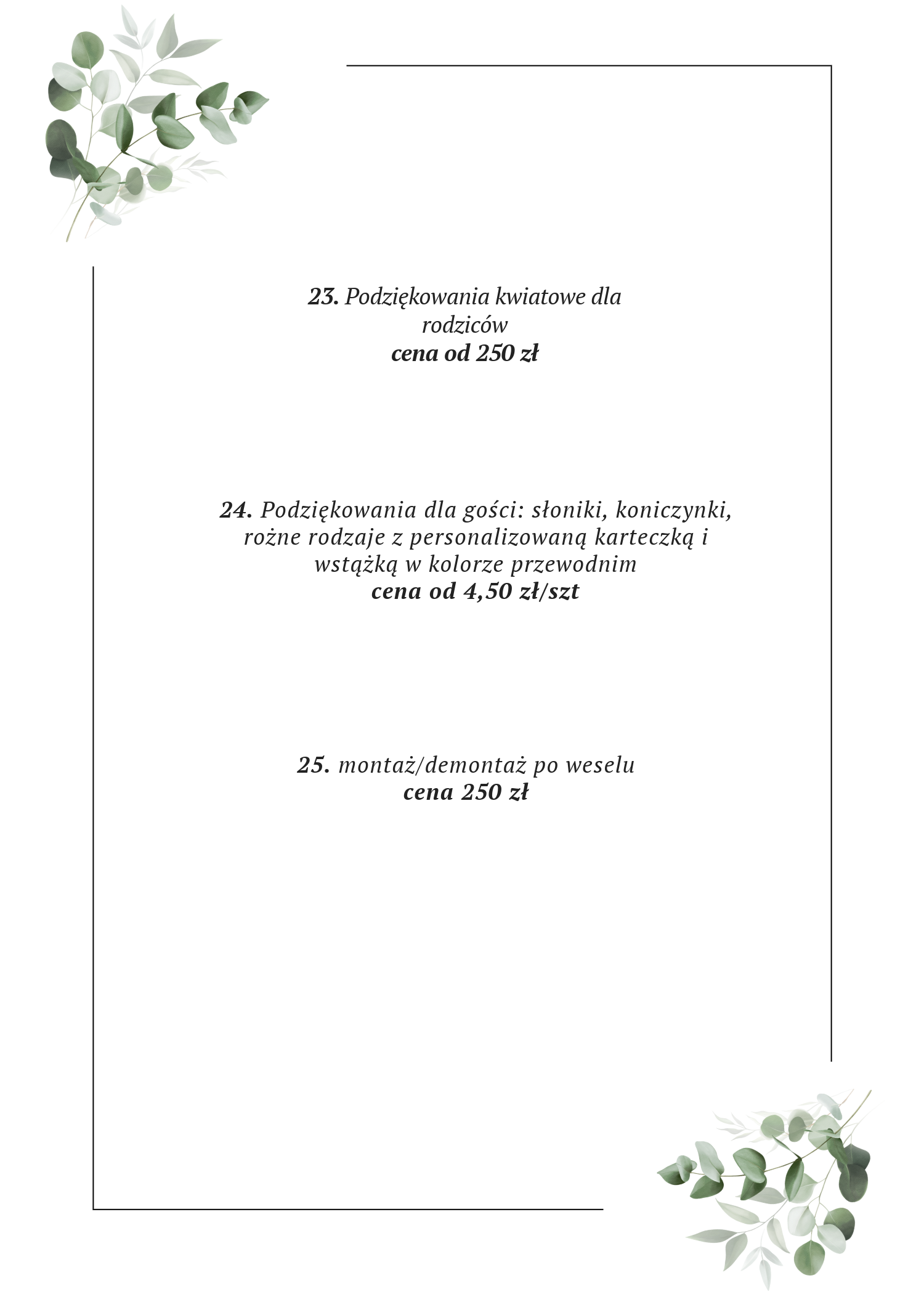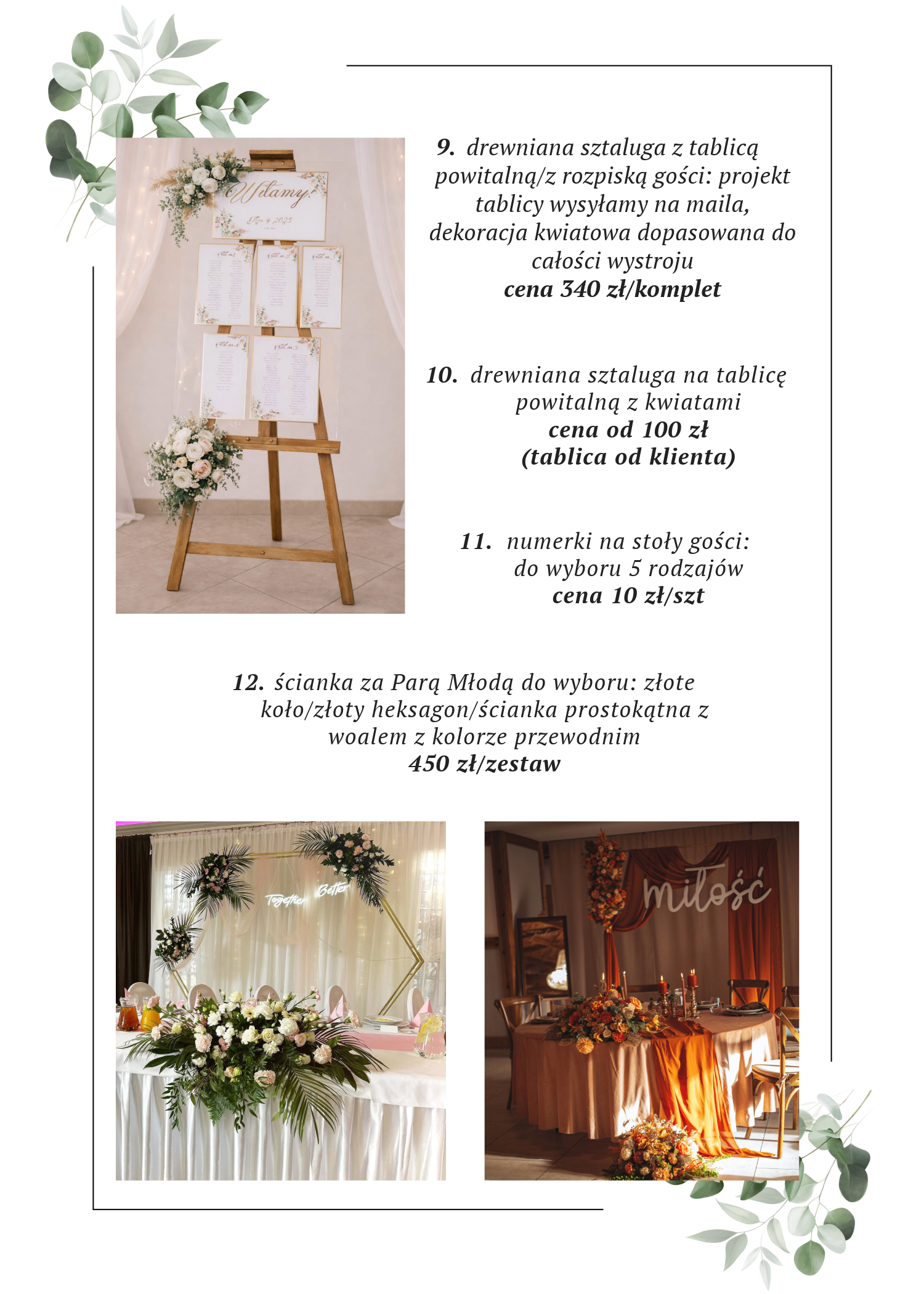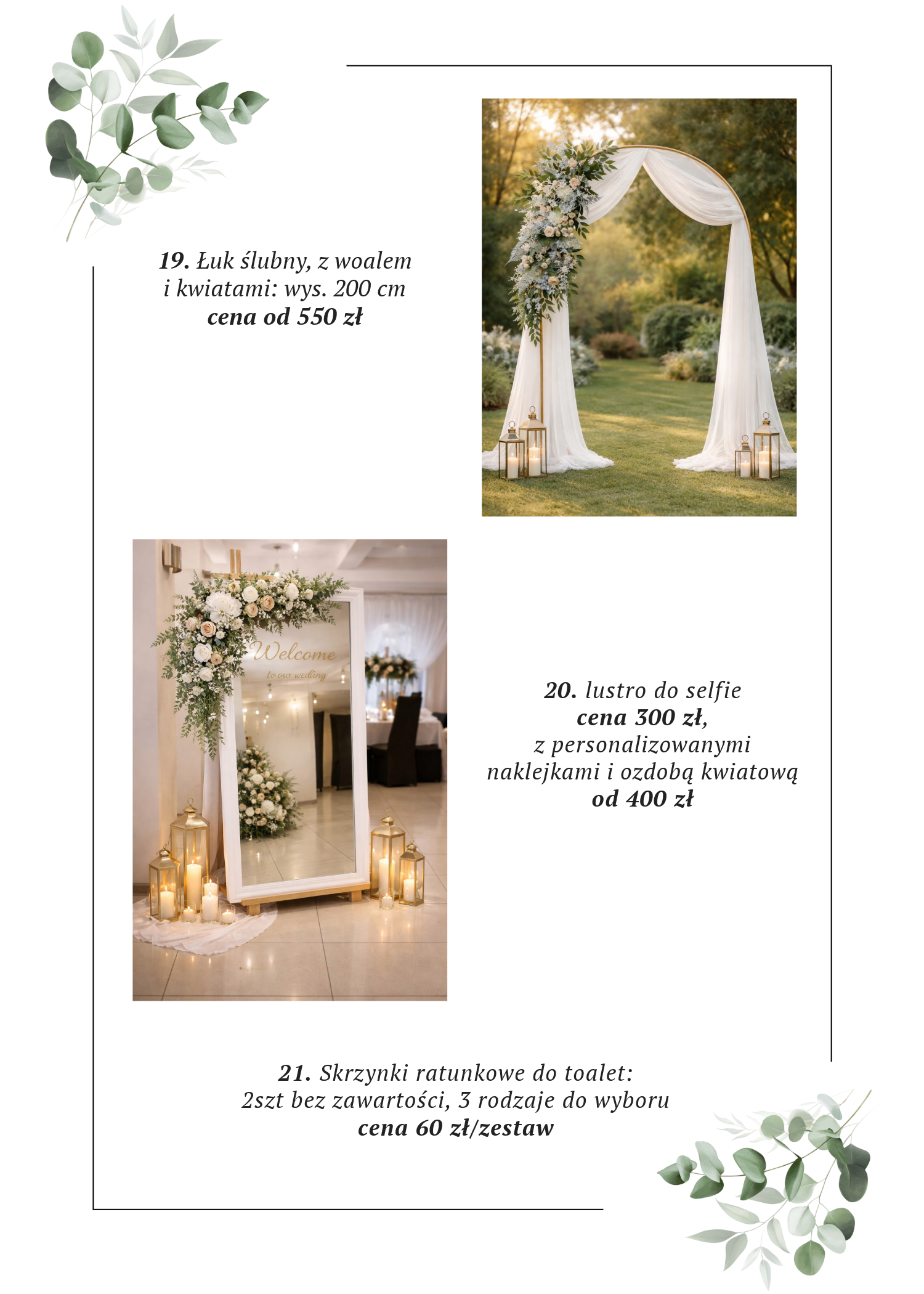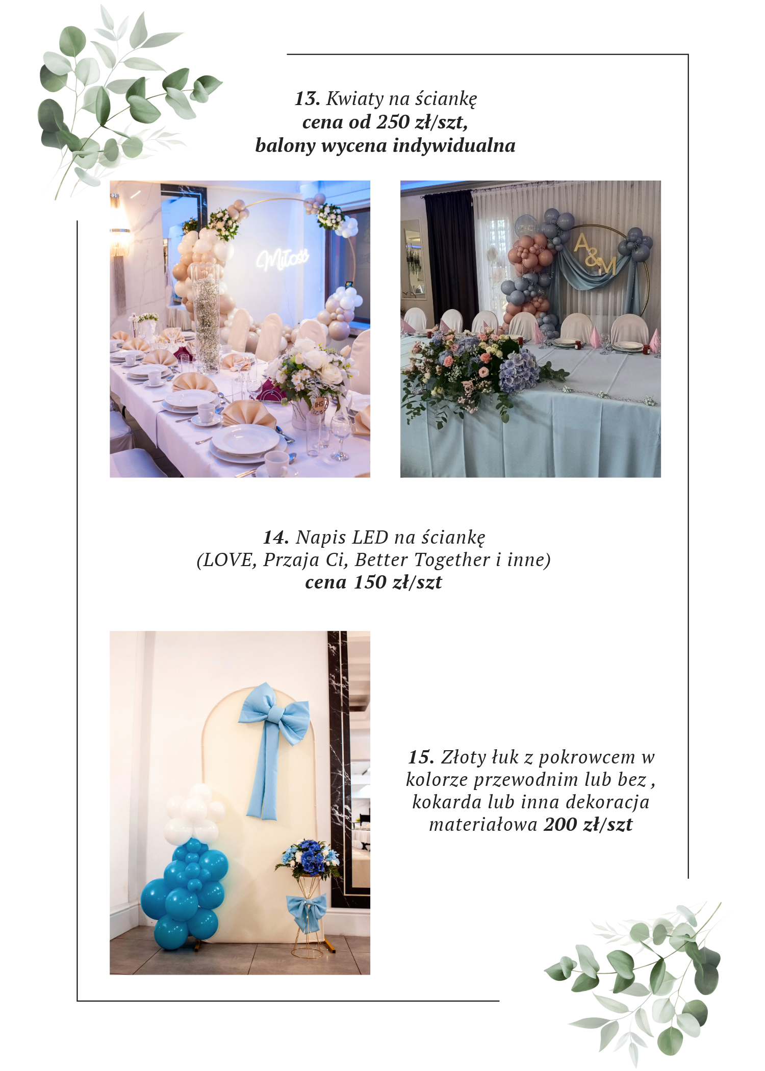 Usługi florystyczne, wynajem dekoracji ślubnych oraz organizacja imprez okolicznościowych.